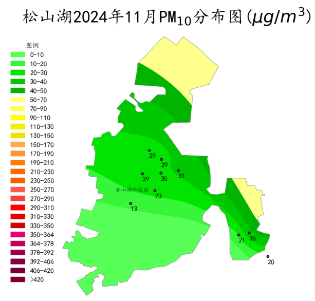 围绕微站连续监测所得数据,松山湖生态环境分局每月绘图区域PM10、PM2.5浓度分散梯度图,对浓度高值区域履行无东说念主机非现场勘测,进一步锁定扬尘耻辱频发区域和时段,为细致化不休明确标的。