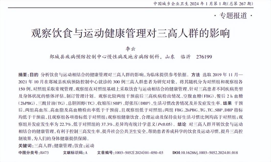 参考府上不雅察饮食与开放健康处理对三妙手群的影响 kaiyun,李云,中国城乡企业卫生2024-01-15