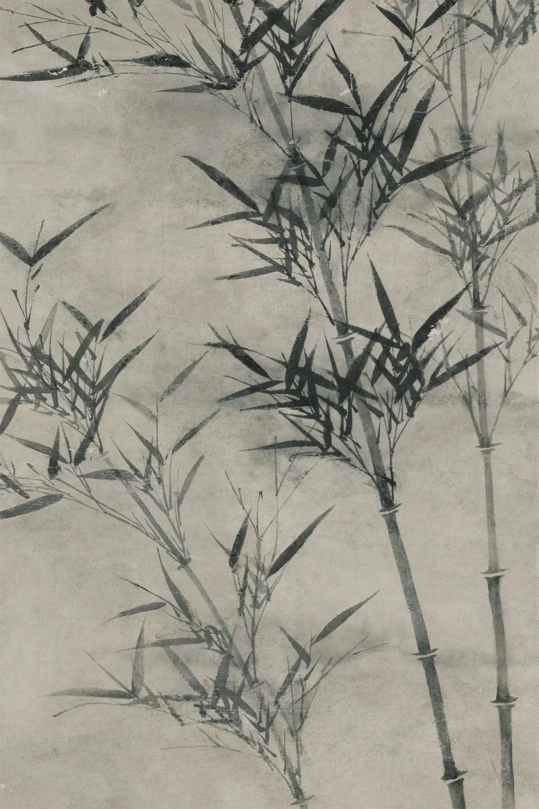 顾安用墨,就像爵士乐手随心弹奏。淡墨画竹竿,浓墨点竹叶,干笔皴石纹,湿墨染配景,墨色在宣纸上撒开了欢,时而热烈得像重金属,时而清透得像蓝调。台北故宫那幅画,配景用淡墨晕染出疲塌山影,和出路的竹石一虚一实,像爵士乐里的独奏和和声,冲突又协调。他甚而在竹叶间甩几笔飞白,就像乐手随心甩出的汗珠,画面一下子就有了呼吸。