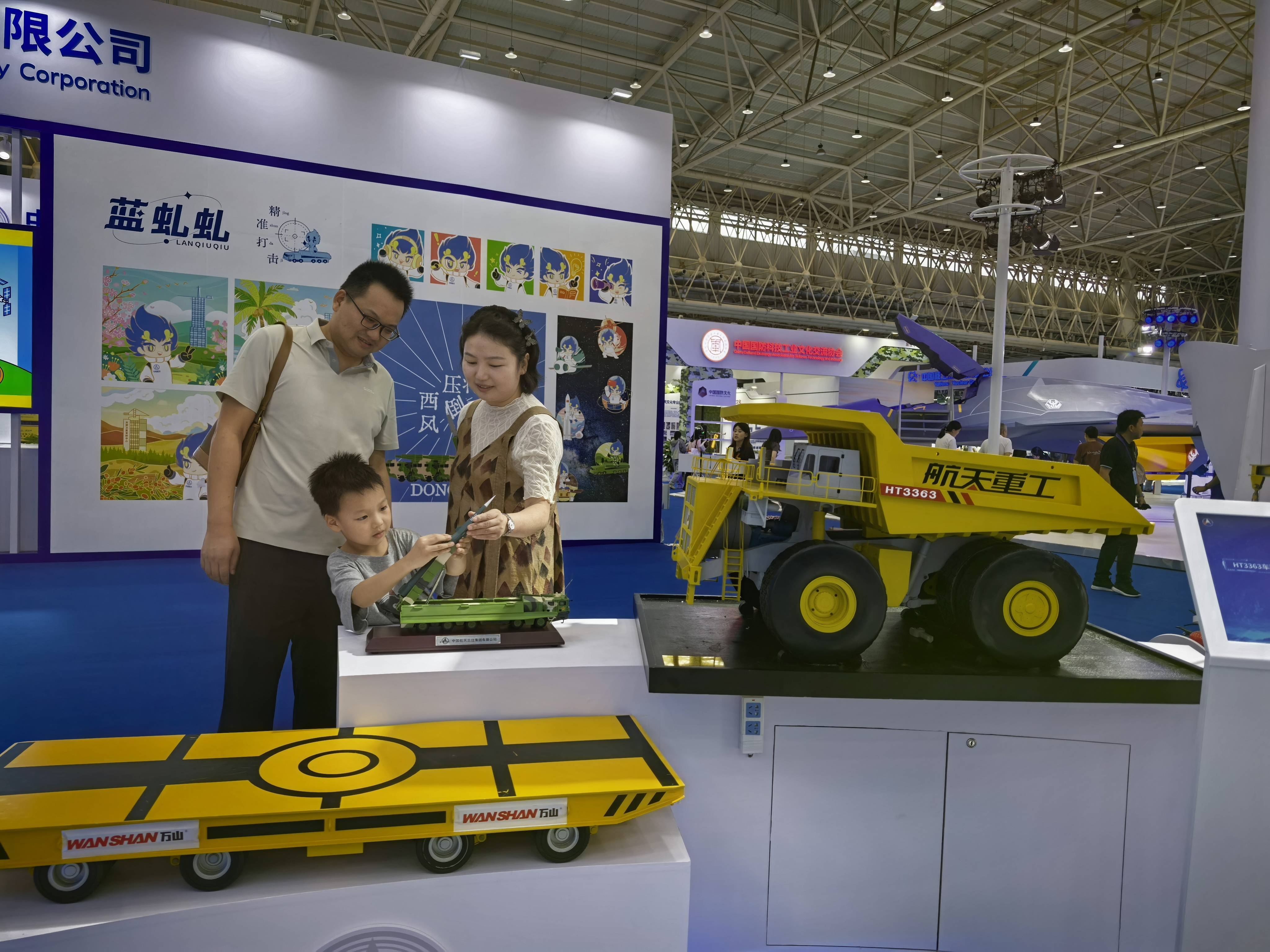 展览会上,歼-20、福建舰、长征五号火箭等人人听过却难以近距离战争的装备,以可触、可感、可互动的方法,来到了寻常庶民身边。拿着刚买的舰载战斗机模子,6岁的艾辰宇细细不雅察着战机的构造,振奋地说:“我准备把它放在书桌上,每天王人看获取。”