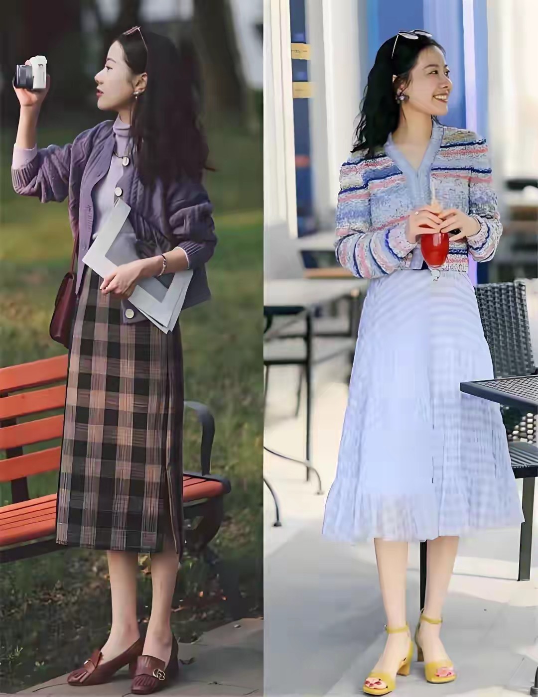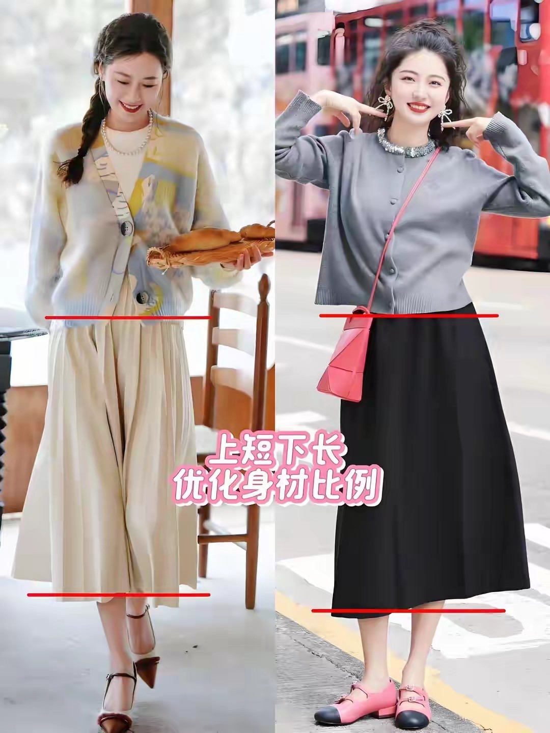 每个东谈主的身高比例不同,选择的穿搭式样当然有一定的区别,比如说底下这位达东谈主,她便是属于1米60以下的小个子女性,这个时辰应该选择短款的忠实开衫来搭配上散装的半身裙,就能很好的栽种她的腰线,达到一个显高显瘦的后果,何况选择的鞋子亦然浅口的项目,无意更好的蔓延腿部线条。