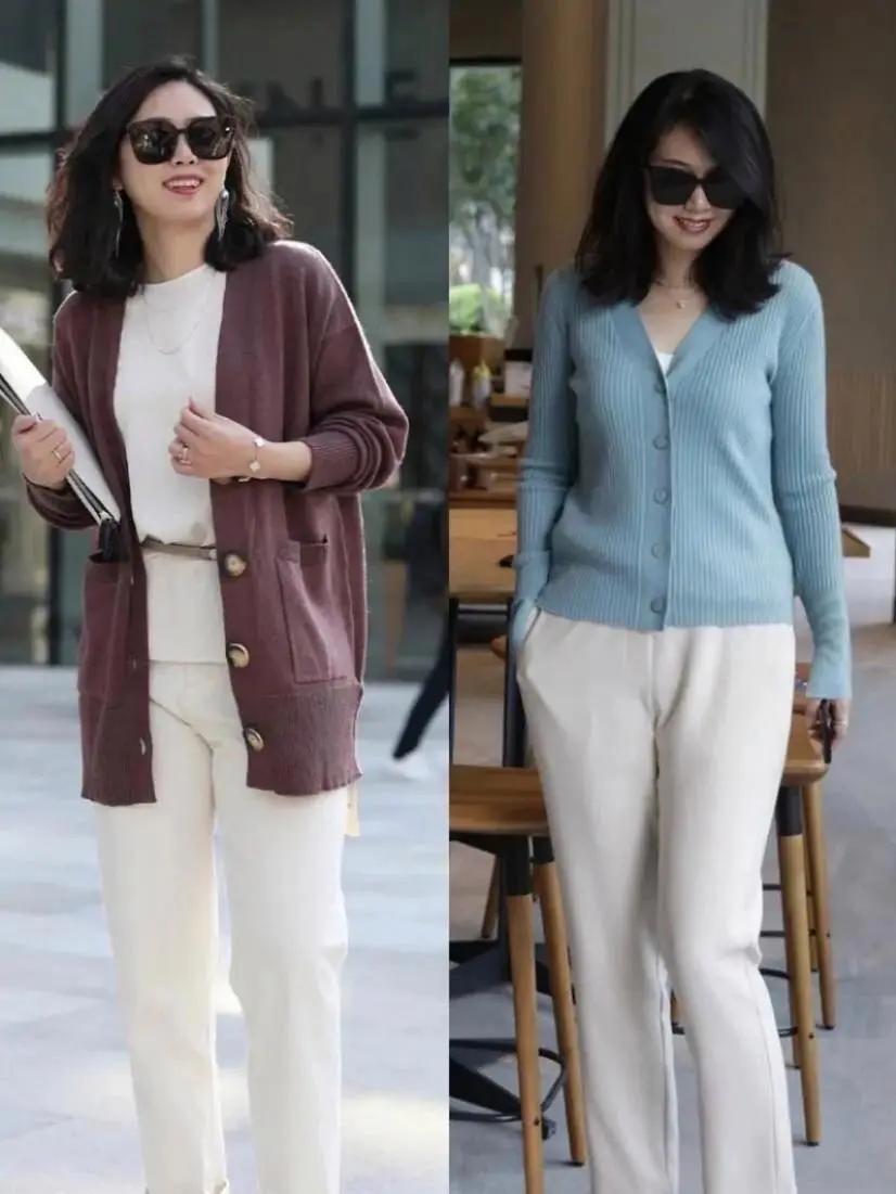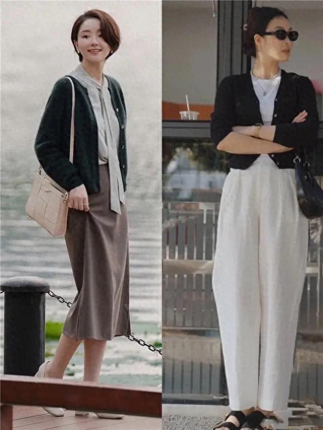 本年的秋天,忠实衫又火了,何况选择忠实衫可以搭配上裙子,还有长裤,举例底下这两位前锋博主就选择了忠实衫,区别搭配上直筒半身裙和白色的烟管裤,选择半身裙来搭配的,显得优雅多礼有女东谈主味,用白色的烟管长裤来搭配上玄色的忠实开衫,干练大方。